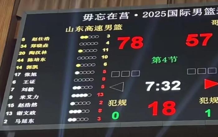 2025国际男篮邀请赛:山东男篮87比74击败哥伦比亚男篮,这是他们在这波热身赛的两连胜。这场比赛山东的发挥非常好,全场比赛保持压制,最终完成大胜。